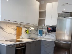 В комнате для вашего комфорта в летний период установлен кондиционер, новый угловой диван и кровать (фото будут обновлены 03.12), на полу качественный ламинат. В зоне коридора и кухни на полу итальянская плитка,есть всё необходимое для из бытовой техники, плита заменена на стеклокерамику, новая кофемашина. Санузел совмещенный,встроенная стиральная машина., балкон не застеклен. Очень теплая квартира.