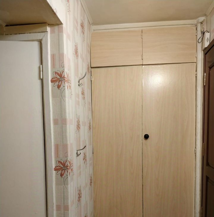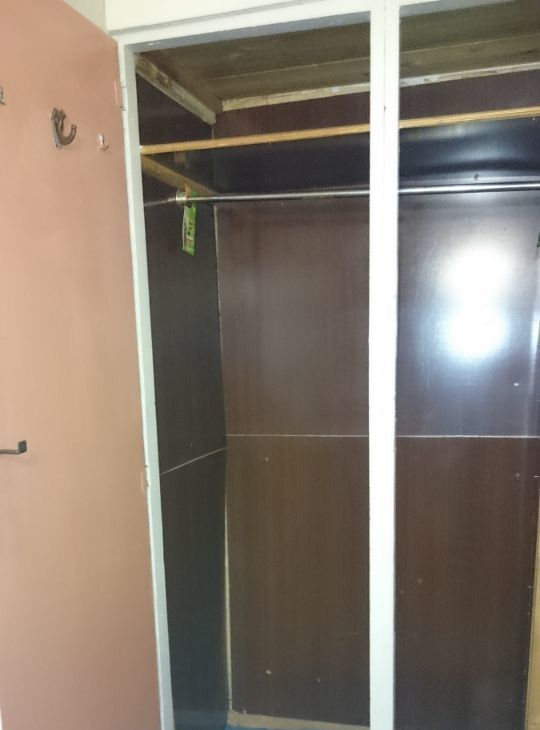 При входе глубокий встроенный шкаф для верхних вещей.