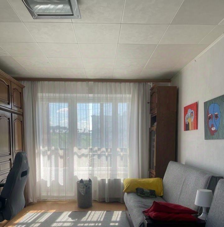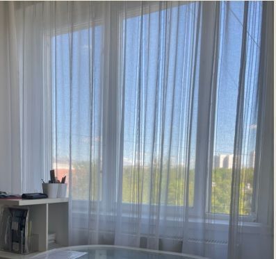 Жилая комната с большим окном на северо-восток и застекленным балконом на юго-восток. Окно кухни - тоже на юго-восток.