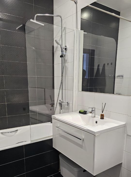 в квартире имеется все необходимое для комфортного проживания: холодильник, индукционная варочная панель, духовой шкаф, свч, смарт тв 65 и 47 дюймов, кровать с подъемным механизмом, посудомоечная машина, стиральная машина, кондиционер.