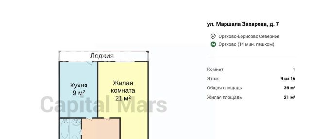 1-к кв. Москва ул. Маршала Захарова, 7 (36.0 м²)