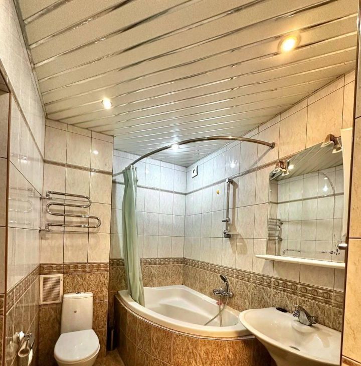 Санузел совмещённый с ванной, что удобно для принятия расслабляющих процедур.