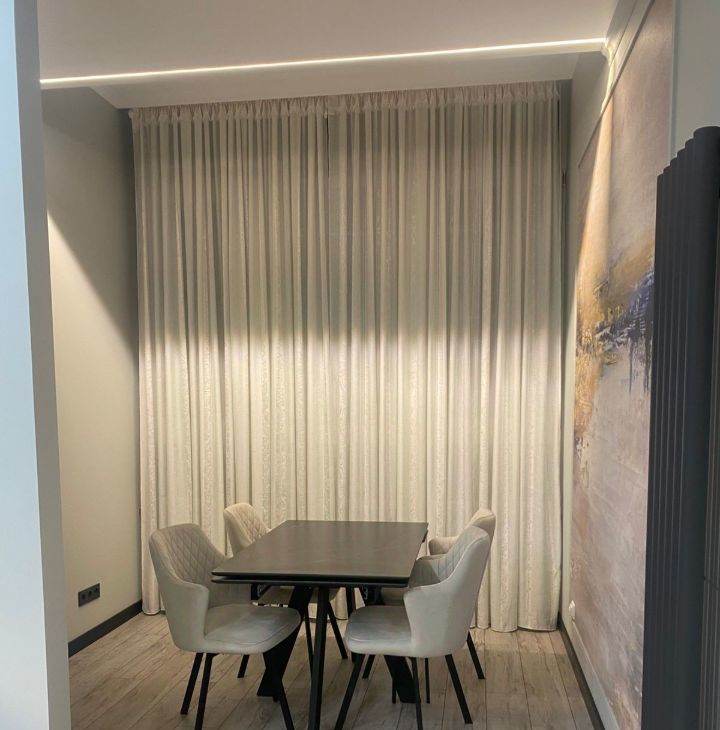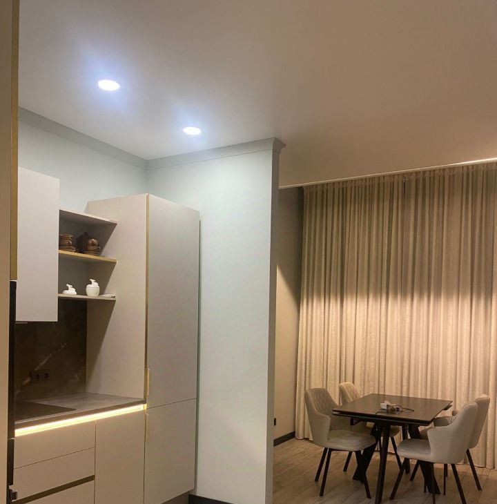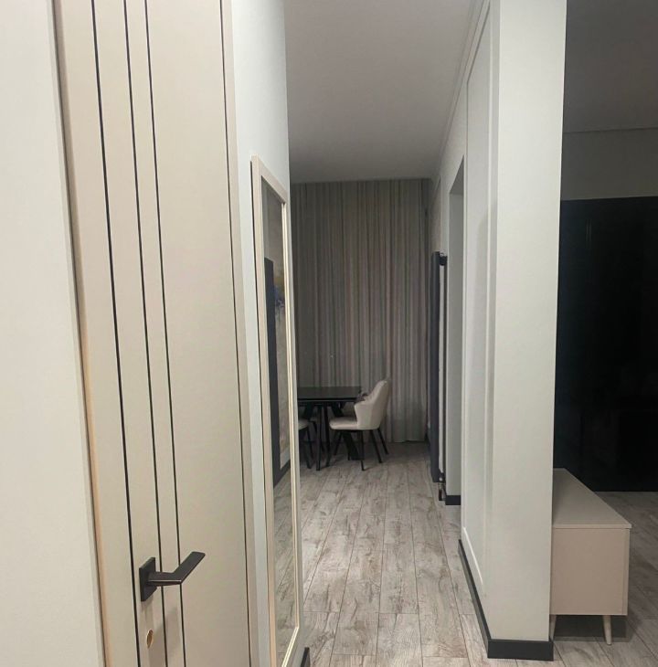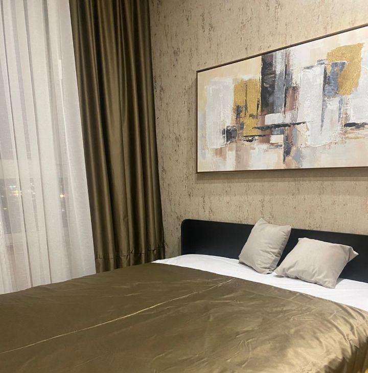 Предлагаем в аренду стильную однокомнатную квартиру с дизайнерским ремонтом, расположенную в современном доме 2019 года постройки. Общая площадь квартиры составляет 42 кв. м, из которых 20 кв. м — жилая зона, а кухня радует просторными 11 кв. м. Квартира находится на 20 этаже 20-этажного монолитного дома, откуда открывается приятный вид на двор. Высокие потолки в 3 метра добавляют ощущение простора и свободы.