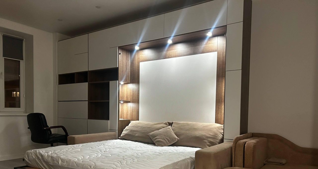 Квартира полностью укомплектована всем необходимым для комфортного проживания: мебель трансформер, современная бытовая техника и полный набор посуды. Просторная гостиная и функциональная кухня создают удобное пространство. Большой гардероб позволит рационально организовать хранение вещей.