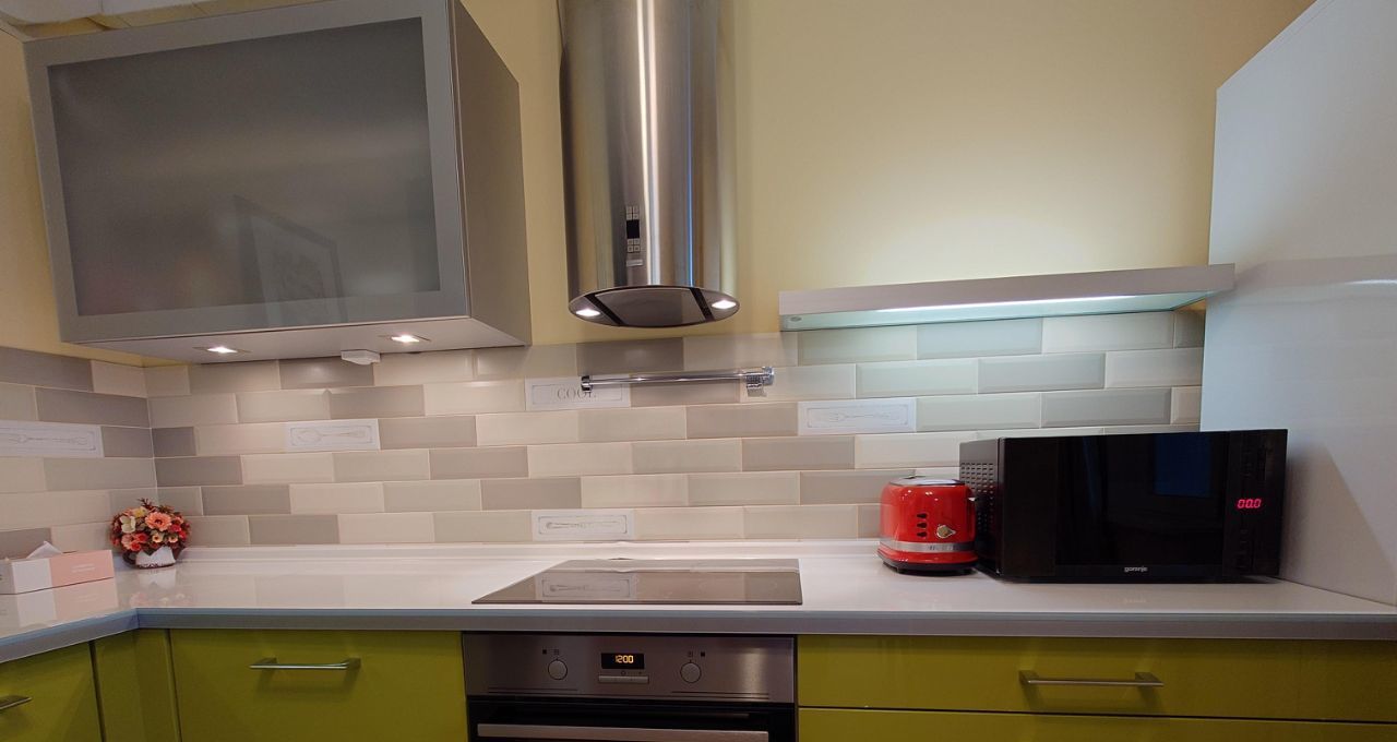 Квартира полностью мебелирована дорогой и качественной мебелью и оснащена всей необходимой бытовой техникой (кондиционер, вытяжки в ванной и на кухне,стиральная и посудомоечная машины). Сантехника в идеальном состоянии.
