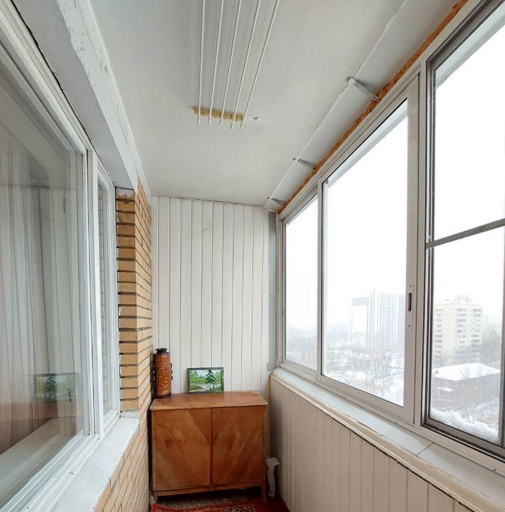 Застекленная 3 м лоджия, с выходом из комнаты.