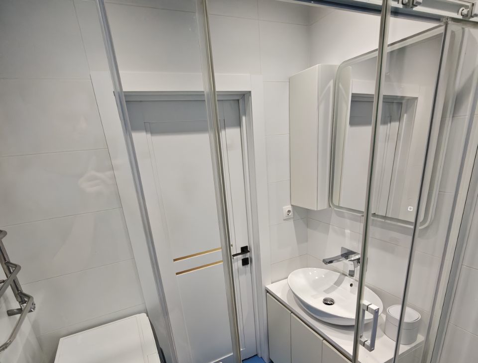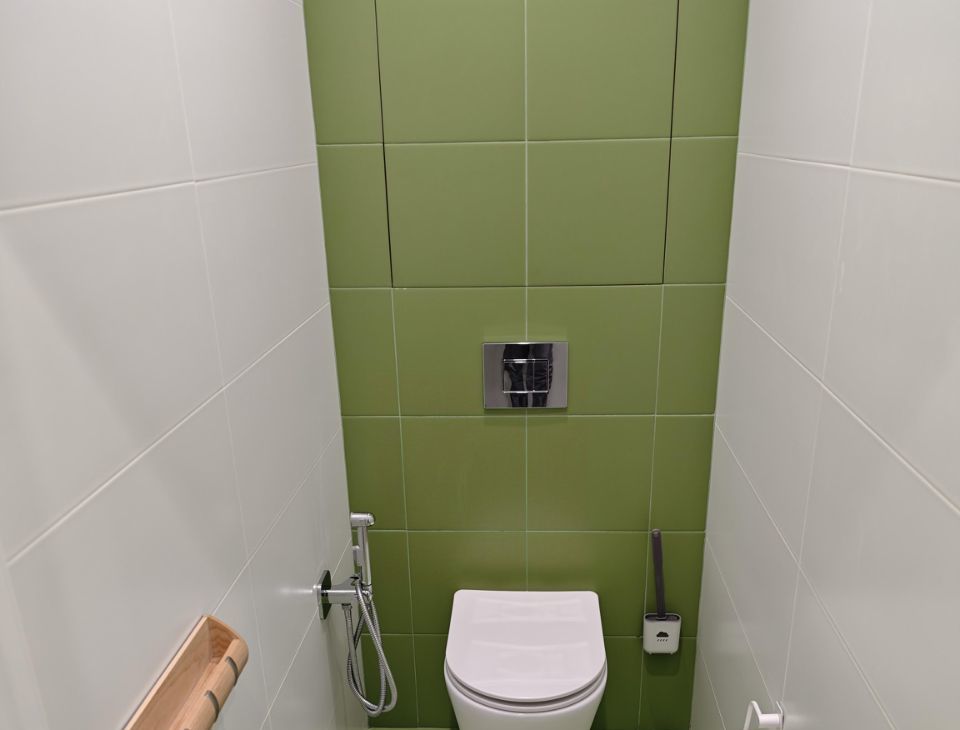 Раздельный санузел с огромной комфортной душевой.