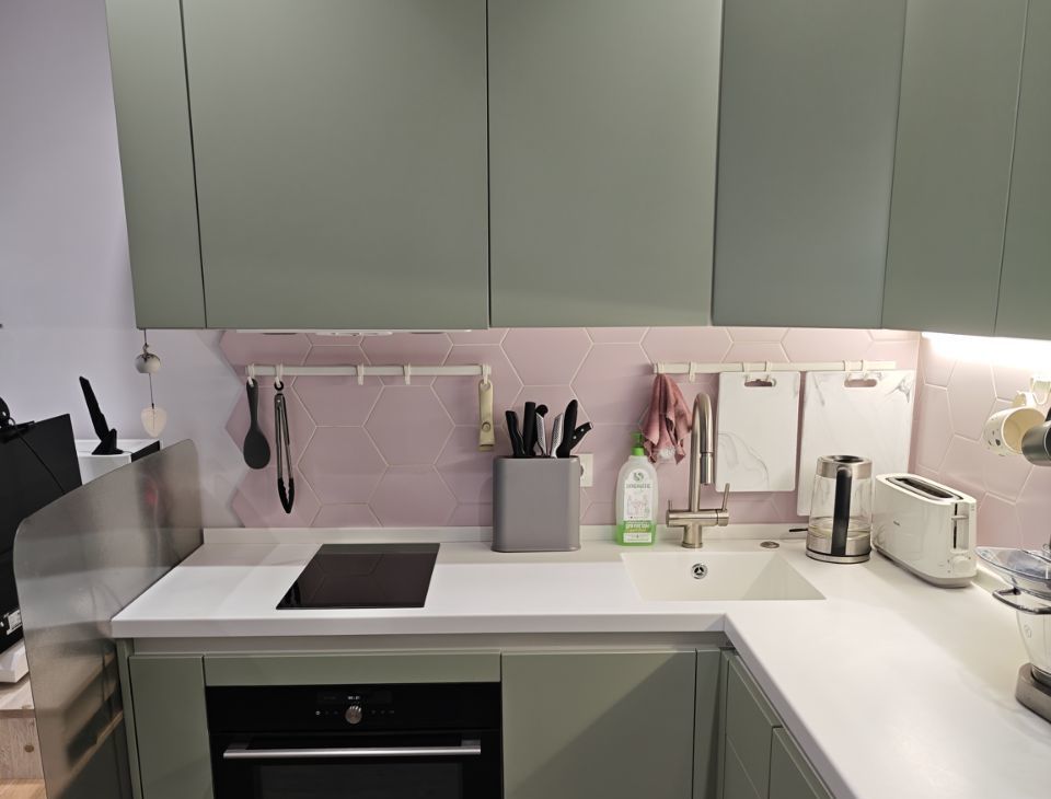 Продуманные места для рабочей зоны на кухне и в спальне.