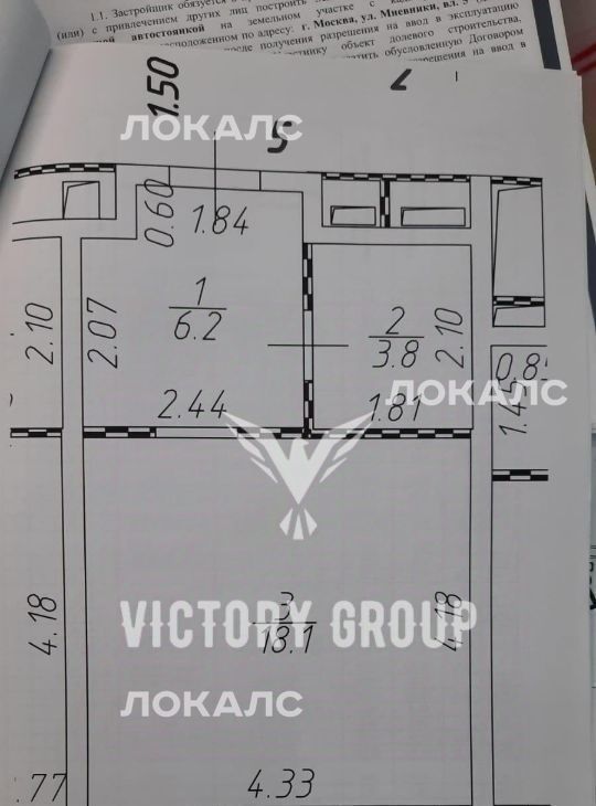 2-комнатная квартира: Москва, Большой Саввинский переулок, 10с1 (45 м²)