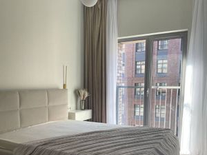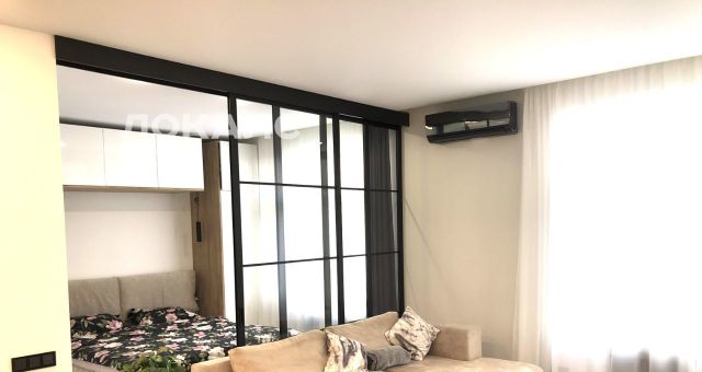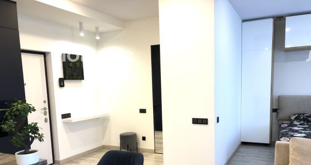 Дизайнерская квартира функциональной планировки - просторная кухня-гостиная и отдельная спальная зона. В отделке использованы качественные импортные материалы. Кухня полностью оборудована встроенной техникой: холодильник, индукционная варочная панель, вытяжка, посудомоечная машина, духовка с функцией СВЧ, фильтрованная питьевая вода в кране. Ванная комната с тёплым полом, стиральная машинка с сушкой. Встроенный шкаф в прихожей для верхней одежды/обуви (с пантографом, 3-мя выкатными полками для обуви и 2-мя дополнительными полками для вещей). Планировочное решение со стеклянной перегородкой даёт возможность отделить зону спальни от гостинной-кухни. Есть смарт-тв и WI-FI, инверторный кондиционер с различными фильтрами очистки и обогащения воздуха. Установлена домофония. Окна с высокой звукоизоляцией, выходят на благоустроенный тихий двор. В квартире остаётся вся мебель и техника