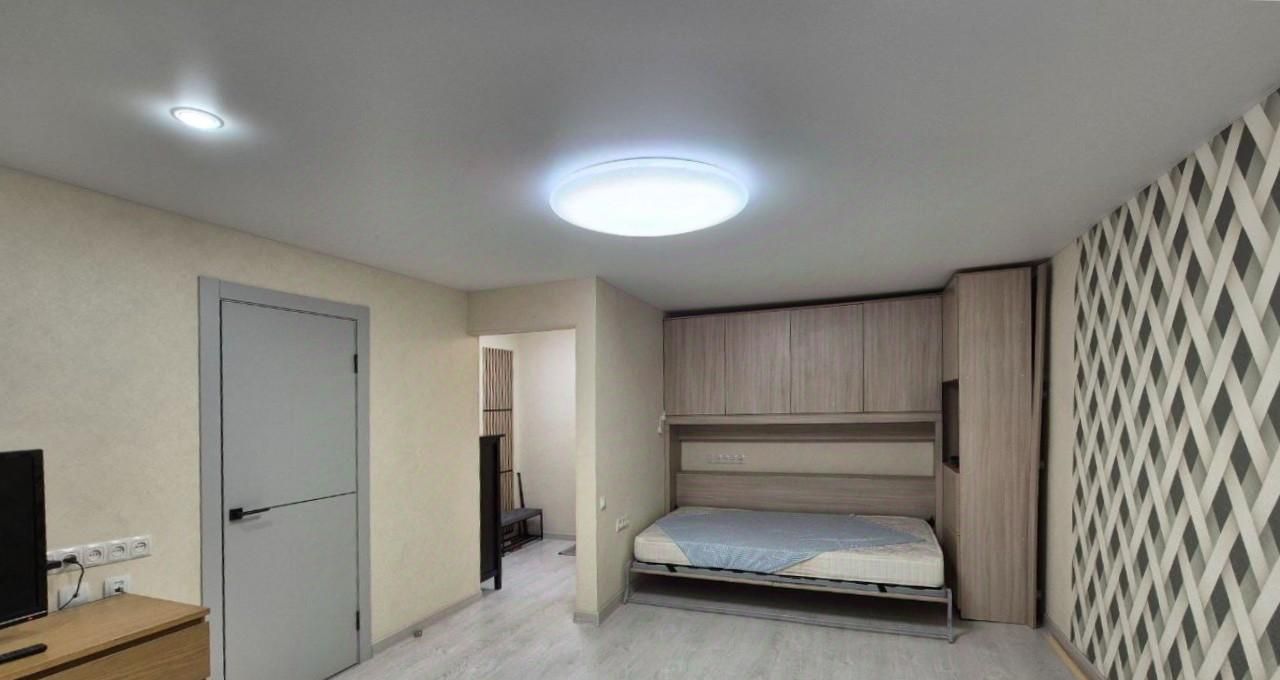 В жилой комнате предусмотрена удобная ниша для спального места, что позволяет рационально использовать пространство. Есть просторная лоджия, окна выходят на юго-восток, благодаря чему в квартире много естественного света в первой половине дня.