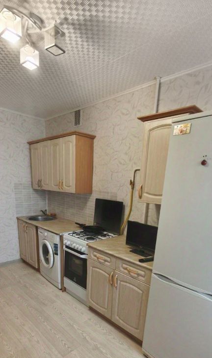 От дома до метро 10 мин. пешком. В квартире выполнили косметический ремонт , на кухне гарнитур - Холодильник, газ. Плита . Выход на застеленный балкон.