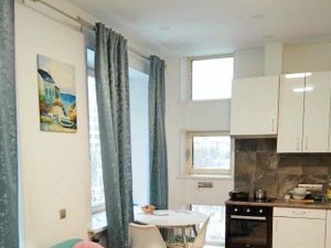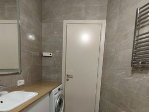 Квартира подойдет для проживания одного человека или пары. В квартире есть вся необходимая мебель и техника. Имеются бытовые принадлежности, теплые полы под плиткой, в полу установлены инвентарные батареи, оборудованная гардеробная комната.