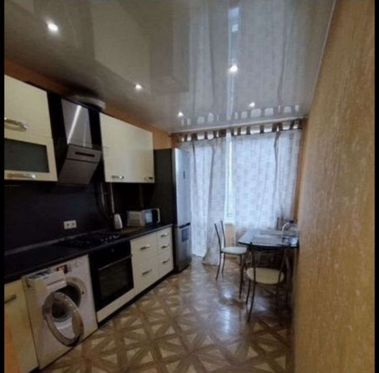 В квартире сделан свежий евроремонт, что создает современную и комфортную обстановку. Окна выходят во двор, поэтому в квартире тихо и спокойно. В комнатах и на кухне есть вся необходимая мебель, а также техника: холодильник, телевизор и стиральная машина. Санузел совмещенный, с ванной. Из дополнительных удобств — мусоропровод и балкон.