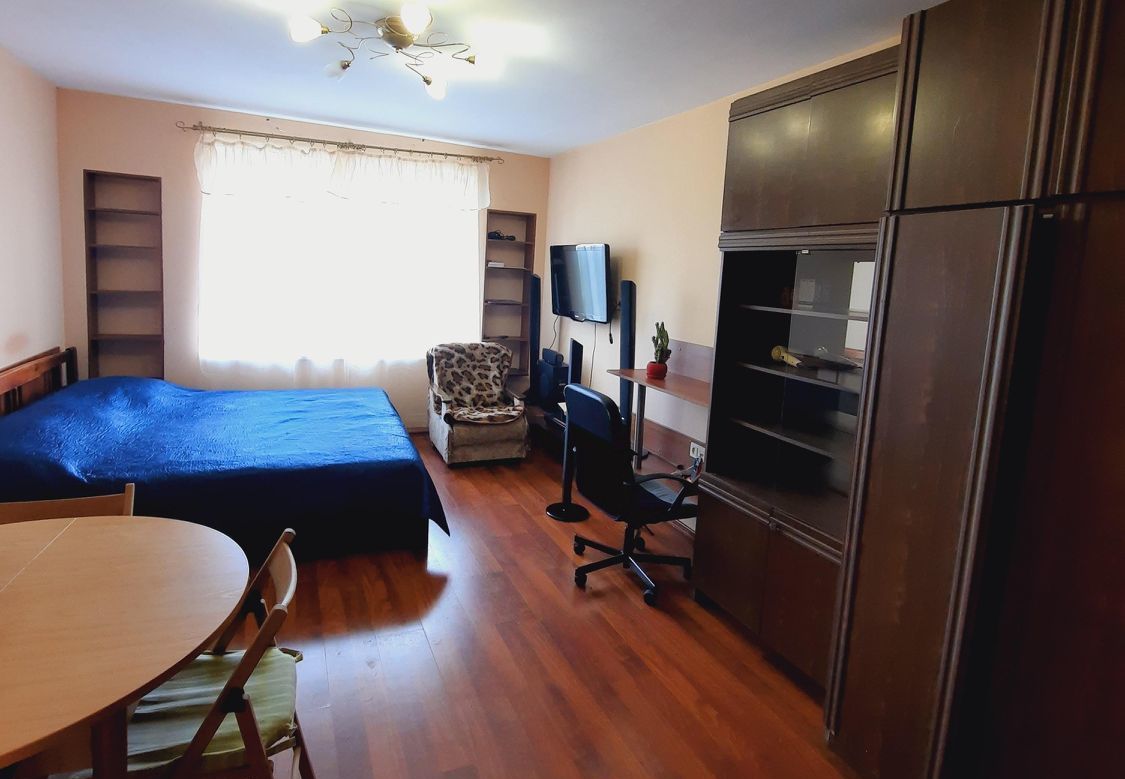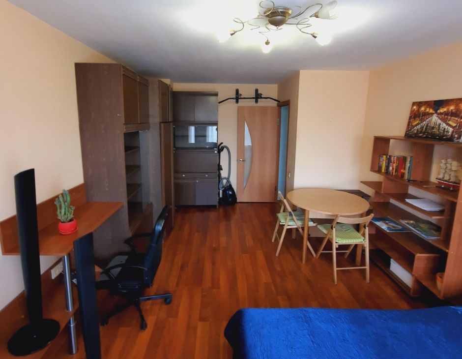 Сдаётся просторная однокомнатная квартира 35.2 кв.м. Чистая квартира в скромном, жилом состоянии. Удачная планировка: кухня 9.9. кв.м. с выходом на балкон, просторная комната 19.9 кв.м. Дом расположен в зеленом дворе, шум от дороги не слышен. Балкон не застеклён.