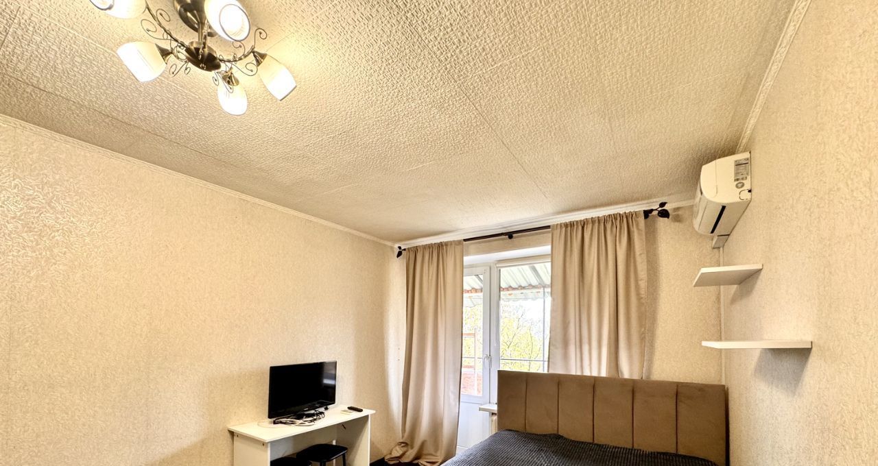Просторная и светлая квартира, есть все необходимое для проживания: двухспальная кровать, шкаф, комод, телевизор, кондиционер. Санузел совмещенный. Есть балкон.