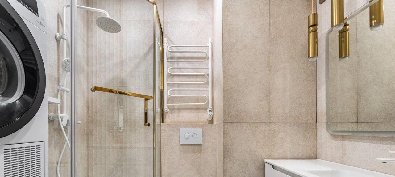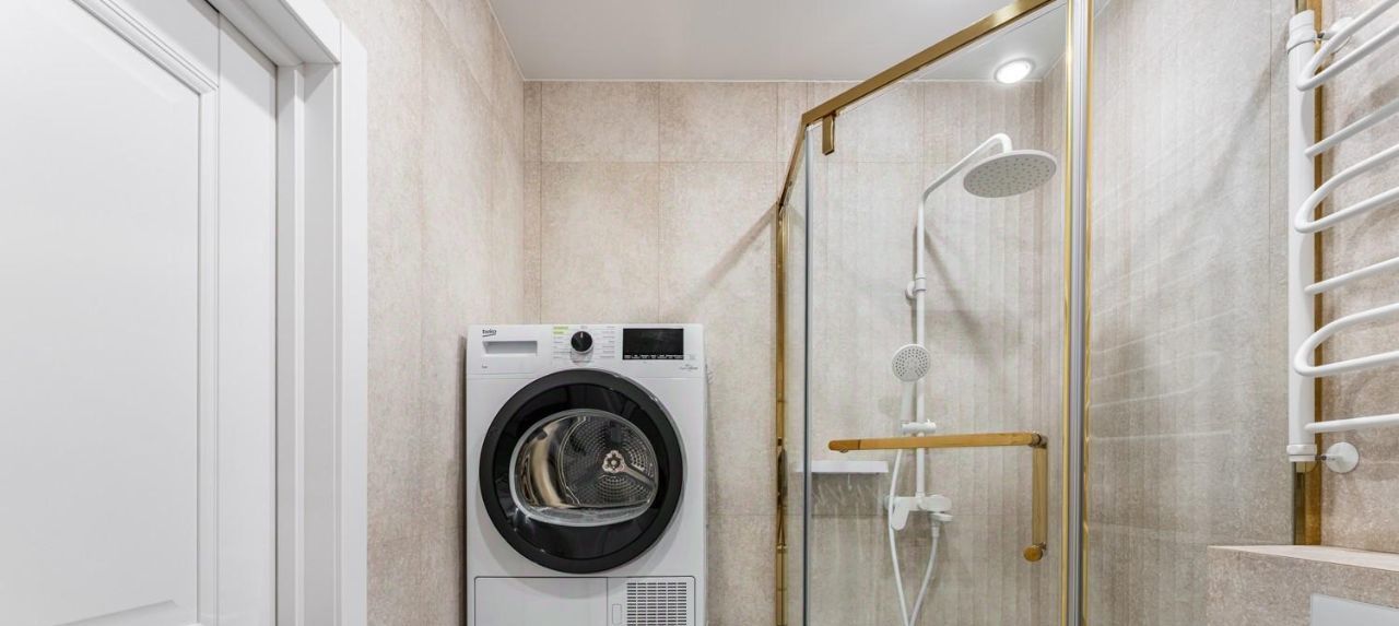 Всё включено: Вся мебель на фото остается. Две вместительные гардеробные с умной системой хранения (в комнате и коридоре). В ванной — стиральная и сушильная машины, водонагреватель. В кухне встроенная техника.