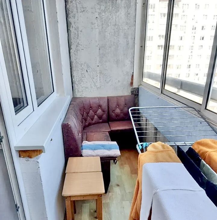В квартире сделан современный ремонт. На кухне и в комнате есть вся необходимая мебель, а также бытовая техника: кондиционер, холодильник, телевизор и стиральная машина. Санузел раздельный, оборудован ванной. Для хранения вещей имеется лоджия, что удобно для размещения сезонных предметов.