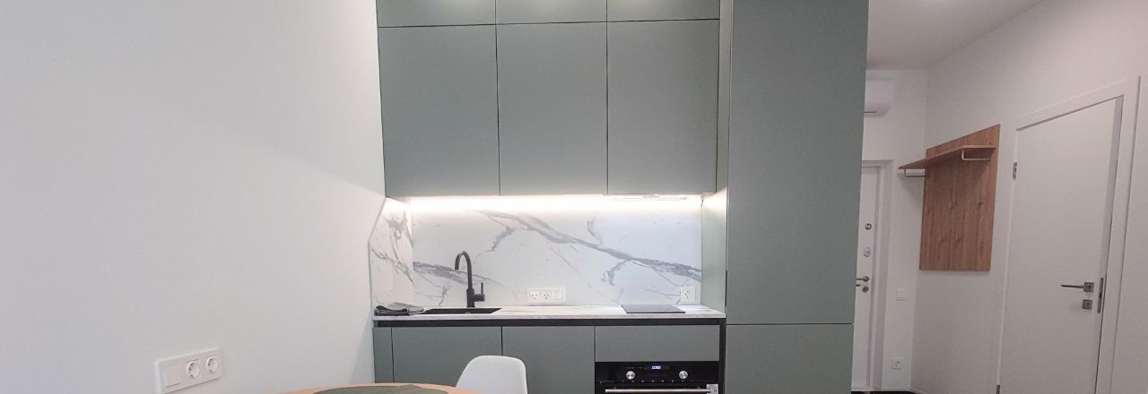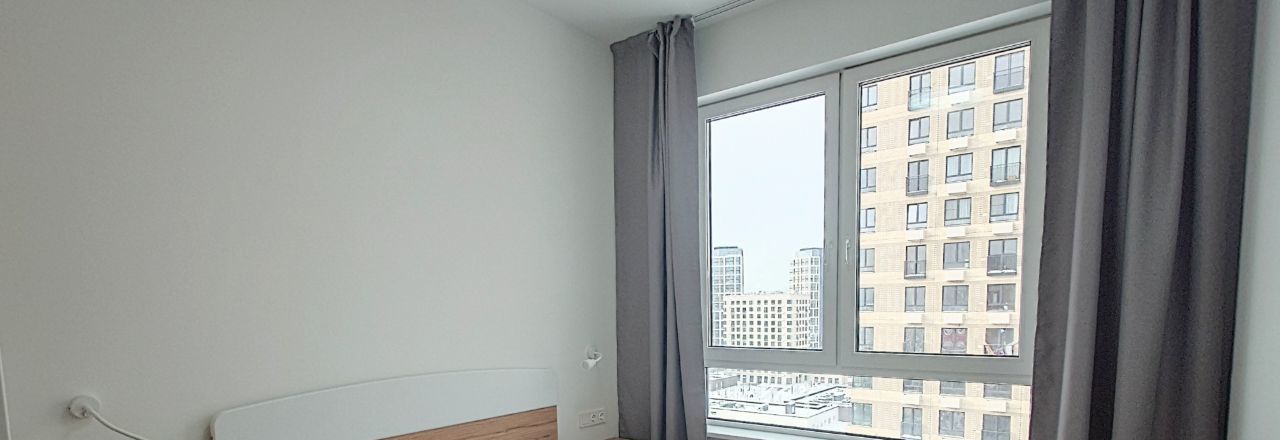 Квартира расположена на 12 этаже многоквартирного дома, сдается впервые. Кухня-гостиная, спальня, санузел, отдельная гардеробная.