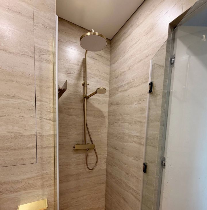 В квартире есть вся необходимая мебель и техника: холодильник, посудомоечная машина, телевизор и стиральная машина. В ванной и ванна, и душевая кабина, что очень удобно в повседневной жизни.