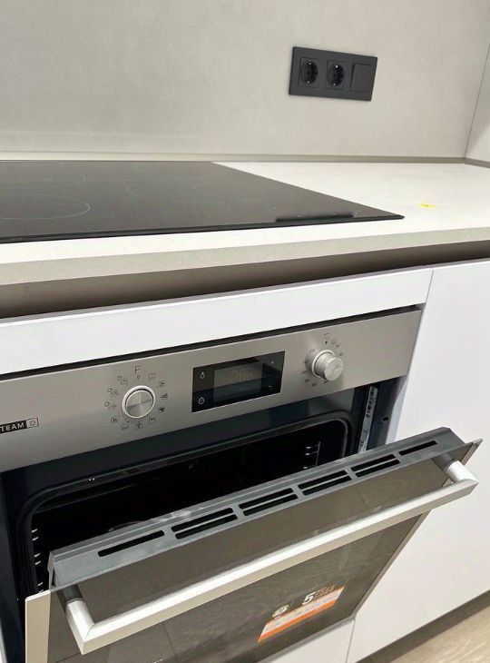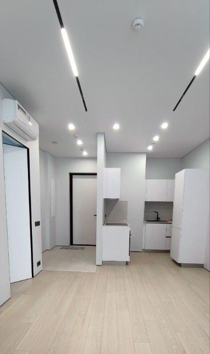Квартира оснащена кухонной мебелью и техникой: посудомоечная машина, холодильник, кондиционеры