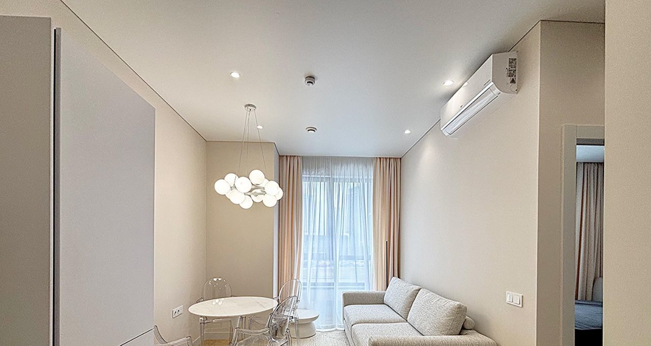В квартире сделан новый ремонт, она полностью готова для комфортного проживания. Квартира оснащена всей необходимой мебелью. Из техники в вашем распоряжении кондиционер, холодильник, варочная панель, духовой шкаф, чайник, посудомоечная машинка и стиральная, телевизор. В совмещённом санузле установлена современная, просторная душевая кабина.