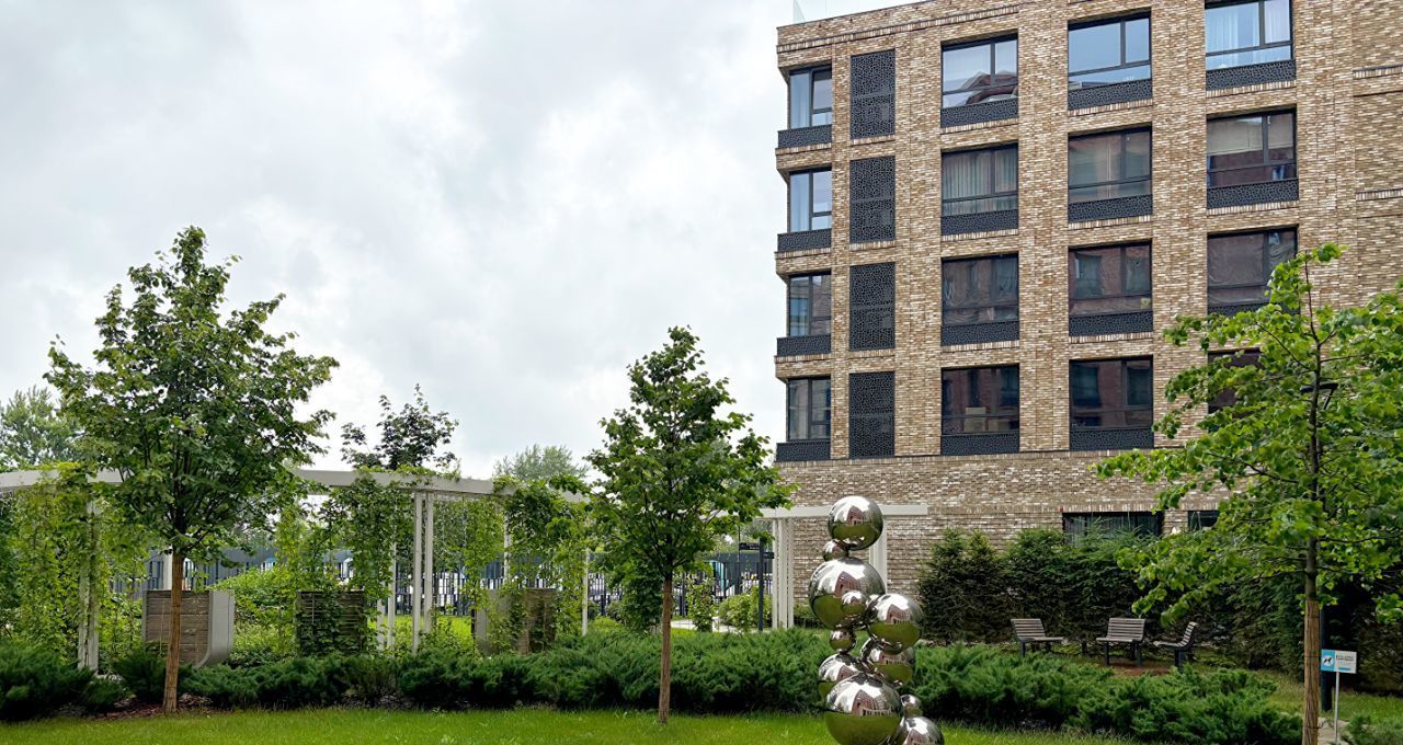 Уникальное преимущество жилого комплекса - в том, что он обособлен от города рекой и природным парком (650 га). Благодаря природному окружению эта территория имеет лучший экологический рейтинг в столице.