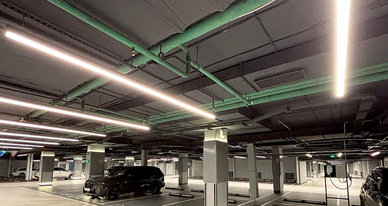 Место для авто можно арендовать в просторном и светлом паркинге, где есть зарядки для электро-мобилей, а так же отдельно выделенные места общего пользования для хранения велосипедов.