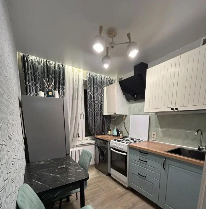 В квартире выполнен современный евроремонт, установлена вся необходимая мебель как на кухне, так и в комнате, что позволяет сразу же заселиться и жить с комфортом. Ванная комната оснащена ванной, а совмещенный санузел создает уютную и функциональную обстановку. Из техники в вашем распоряжении холодильник и стиральная машина. Для удобства жителей в доме есть мусоропровод.