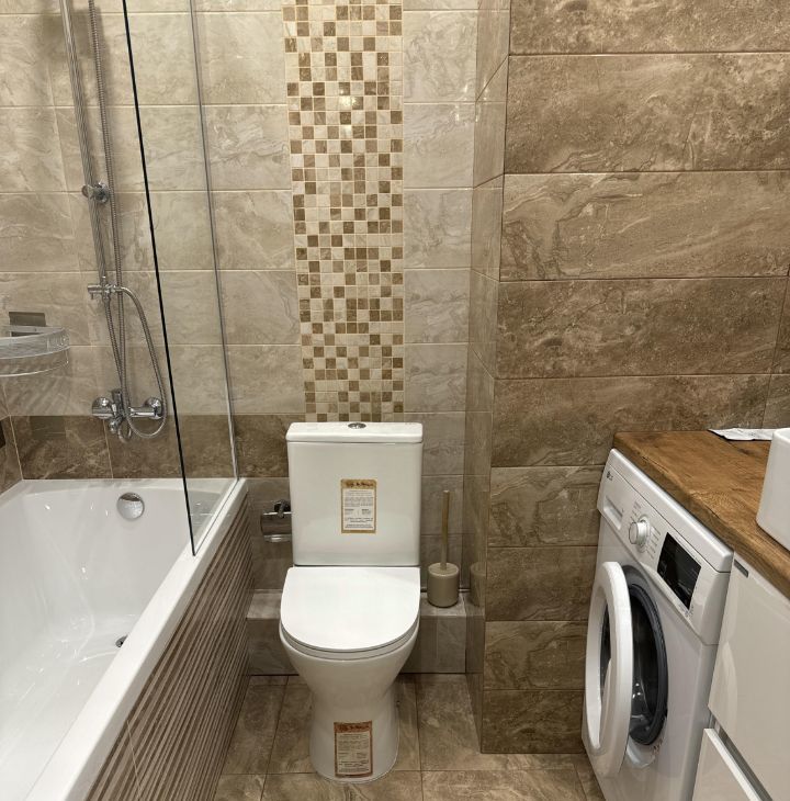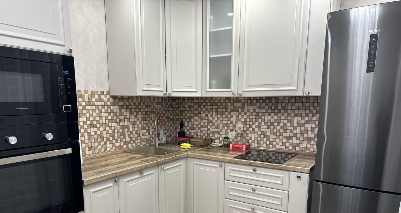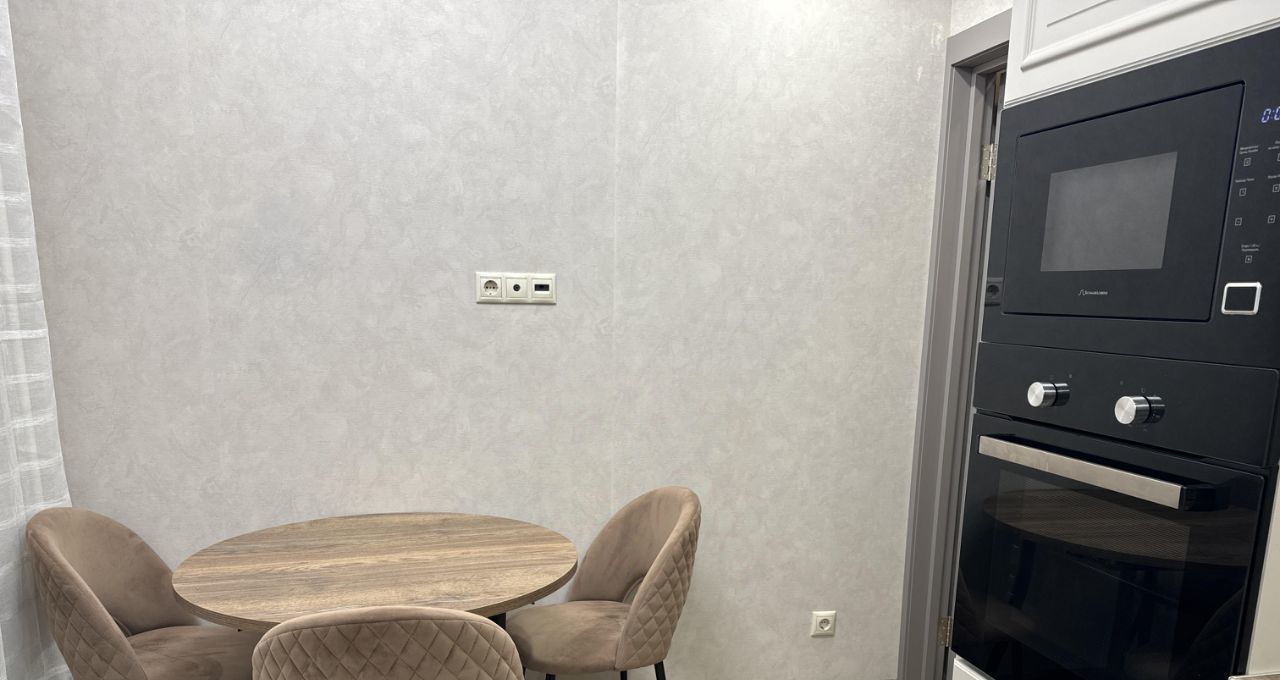 Квартира с дизайнерским ремонтом, полностью готова к проживанию. В просторной кухне площадью 10 кв. м есть вся необходимая мебель и техника, включая холодильник, посудомоечную машину и стиральную машину. В комнате также имеется мебель и кондиционер для комфортного пребывания в любое время года. Окна квартиры выходят во двор, поэтому в ней всегда тихо и спокойно. В ванной комнате установлена ванна, а для удобства жильцов есть мусоропровод.