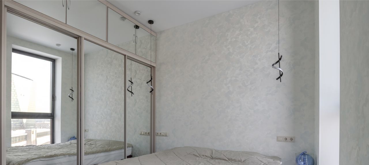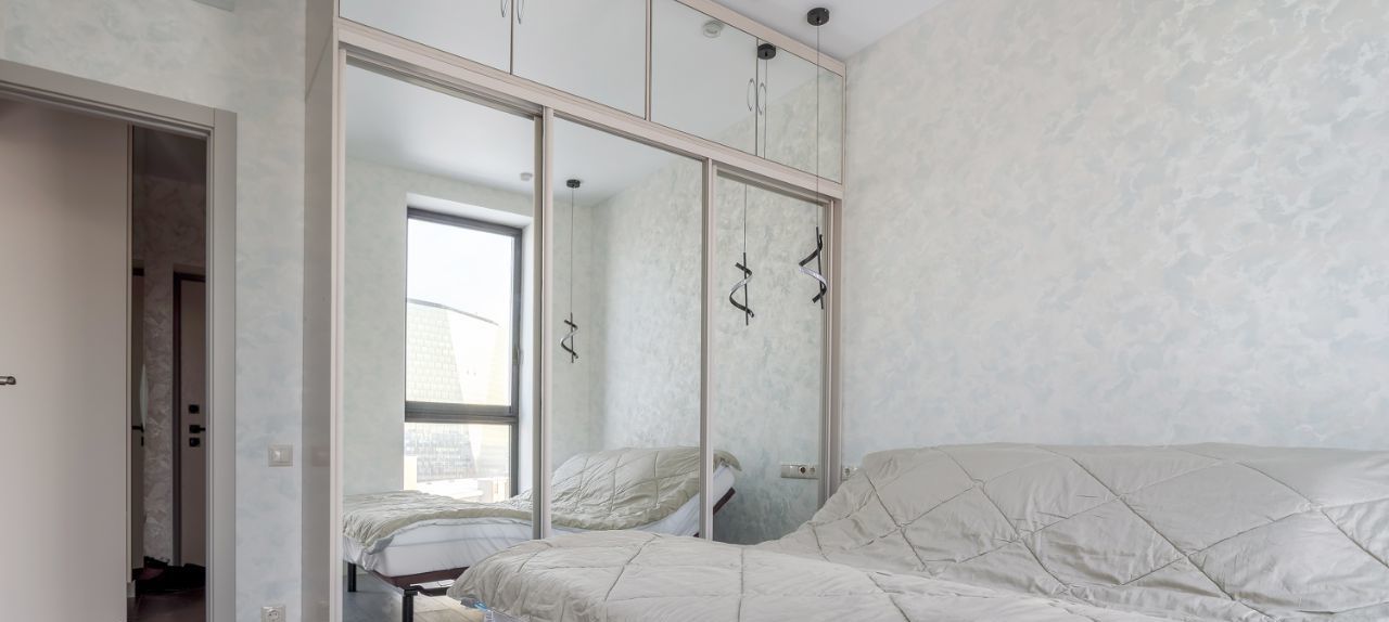 Спальня - кровать трансформер, что удобно для отдыха и сна. Зеркальный шкаф-купе.