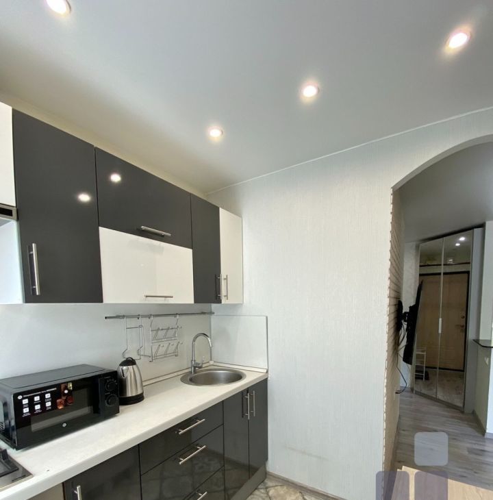 Кухонный гарнитур с многочисленными шкафчиками и нишами, стол, стулья, варочная панель и духовым шкафом. Окна стеклопакеты. Сан.узел совмещен, в плитке, с ванной. Пол ламинат. Проведен Интернет (wi-fi) Металлическая дверь.