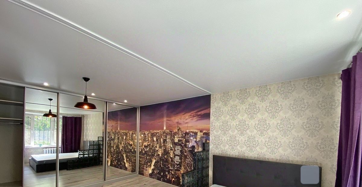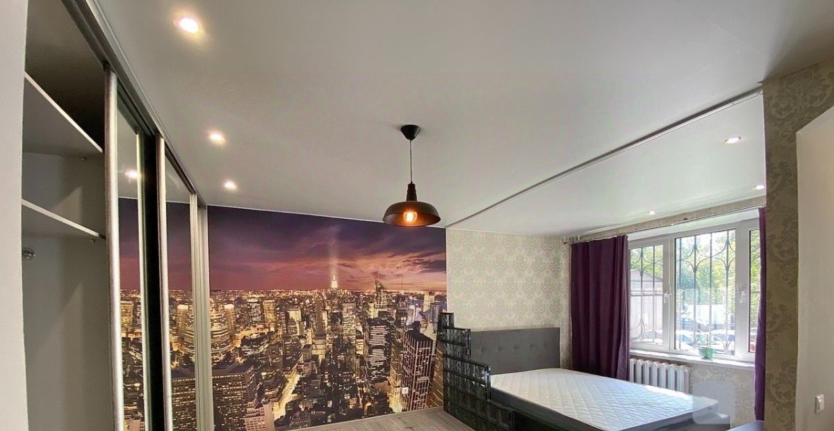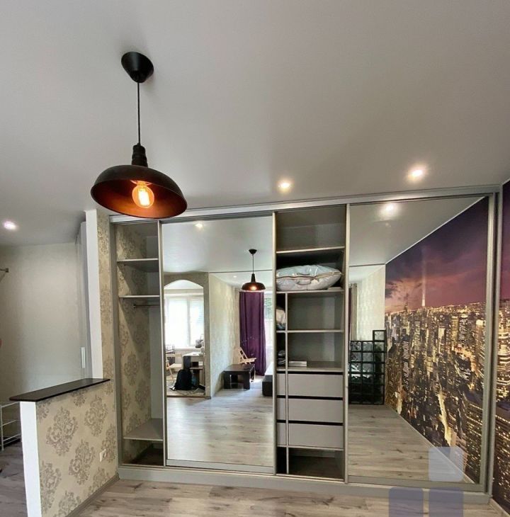 Комнату возможно разделить на две зоны; спальня и гостиная, разграничив шторой(перегородкой)