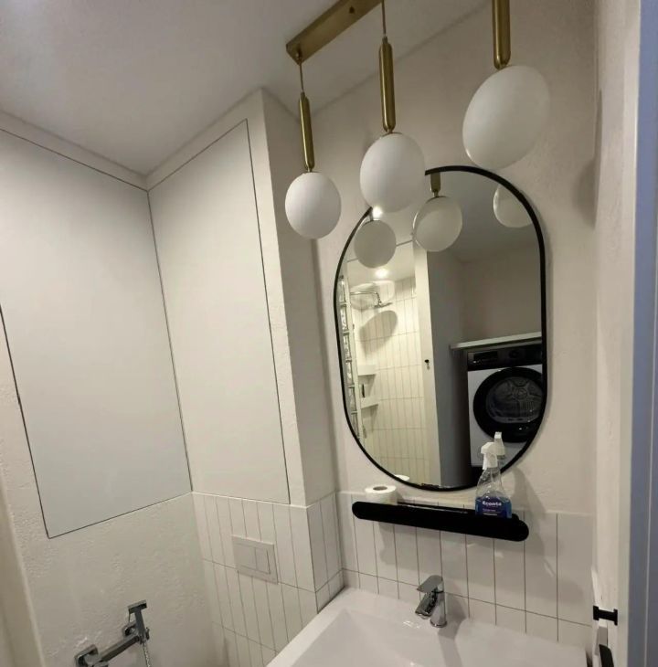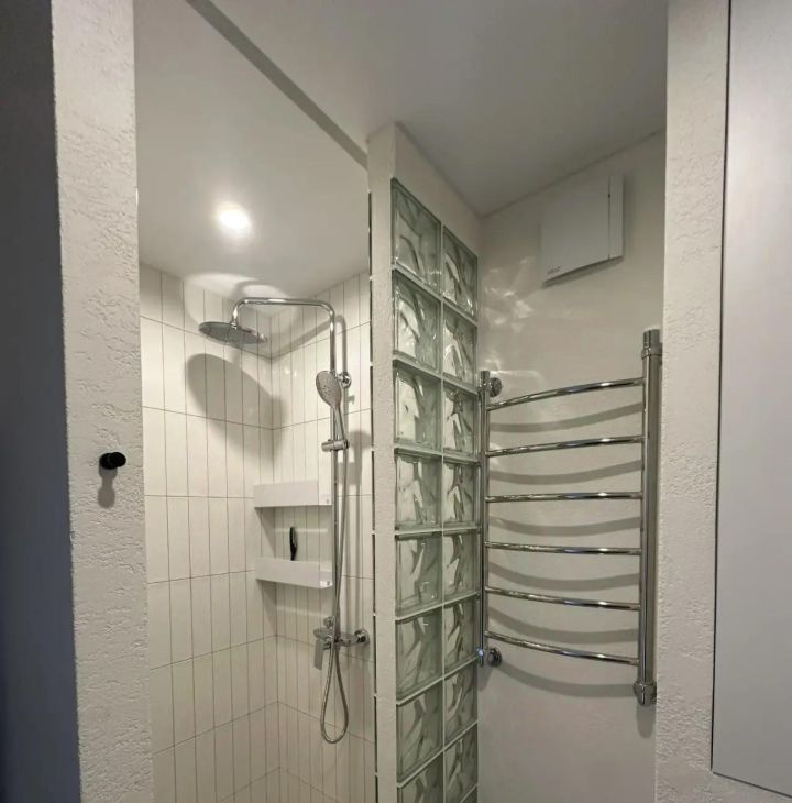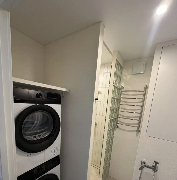 Душевая кабина, теплый пол, полотенцесушитель. Установлены фильтры для воды и система защиты от протечек Нептун (ваша безопасность). Есть стиральная и сушильная машина, дополнительный свет над зеркалом, гигиенический душ.