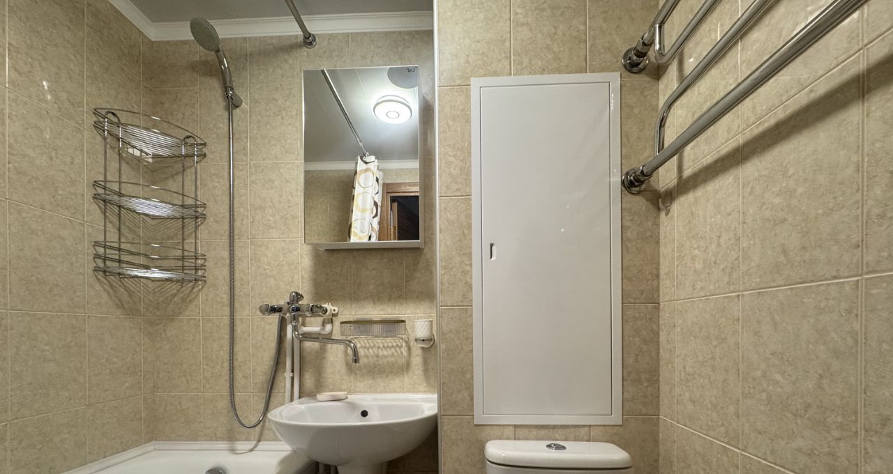 Полностью укомплектована мебелью и всей необходимой техникой: холодильник, стиральная машина, посудомойка, телевизор, кондиционер - всё в отличном состоянии. Дополнительно новый шкаф в комнате можем установить по запросу на ваш выбор.