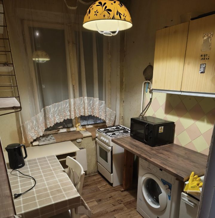 Сдается однокомнатная квартира, окна во двор, из хорошего: микроволновка, чайник, стиральная машина, холодильник. По остальному видно по фото, бабушкин ремонт в котором потом снимали длительное время разные люди)