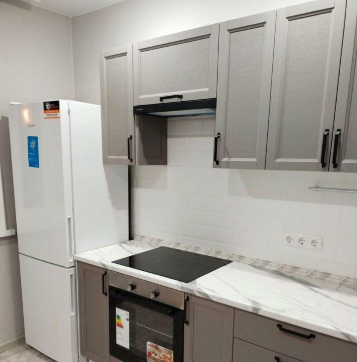 крупная бытовая техника:2 телевизора (кухня,комната),холодильник,стиральная машина,встроенная электрическая плита и духовой шкаф.