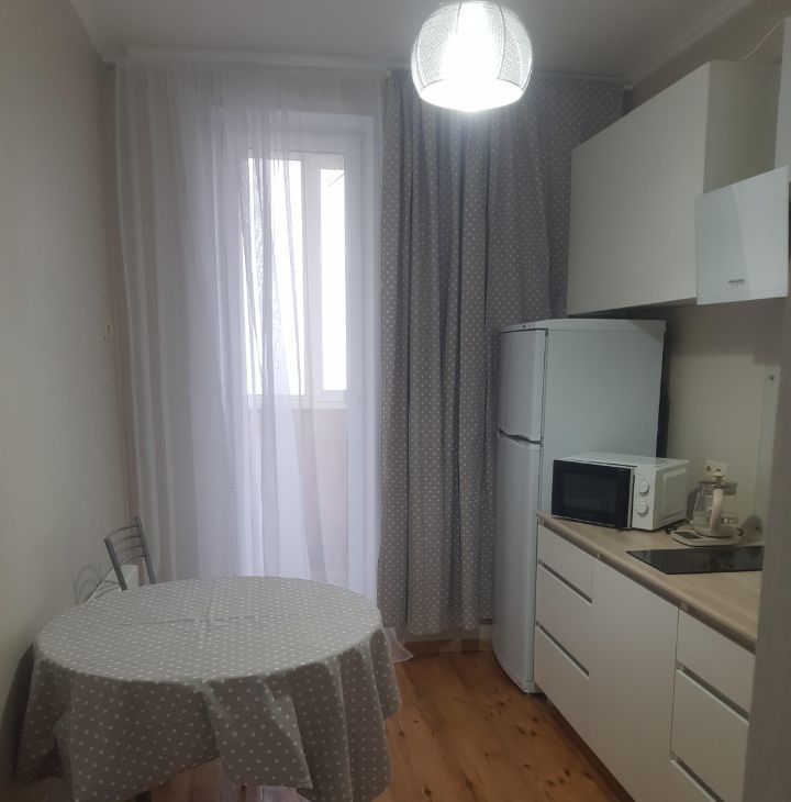 Сдаётся уютная квартира в современном панельном доме, расположенном на 23 этаже 24-этажного здания. Общая площадь квартиры — 36,7 кв. м, с жилой площадью 20 кв. м и кухней 9 кв. м. Высота потолков составляет 2,7 метра, что создаёт ощущение простора. Окна выходят во двор, благодаря чему в квартире тихо и спокойно.