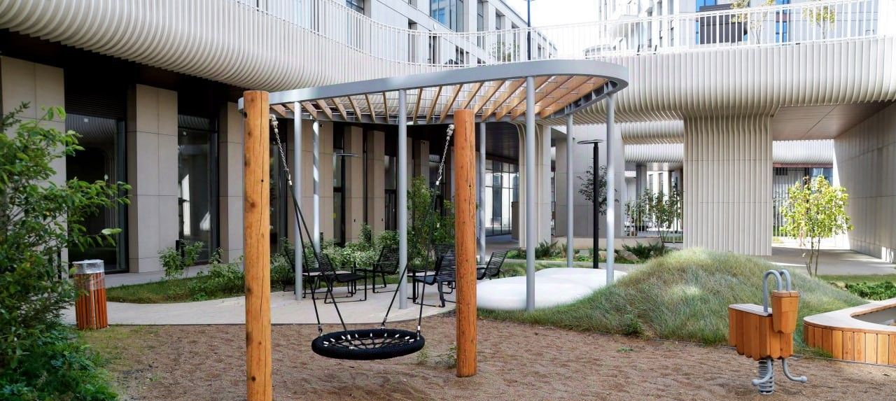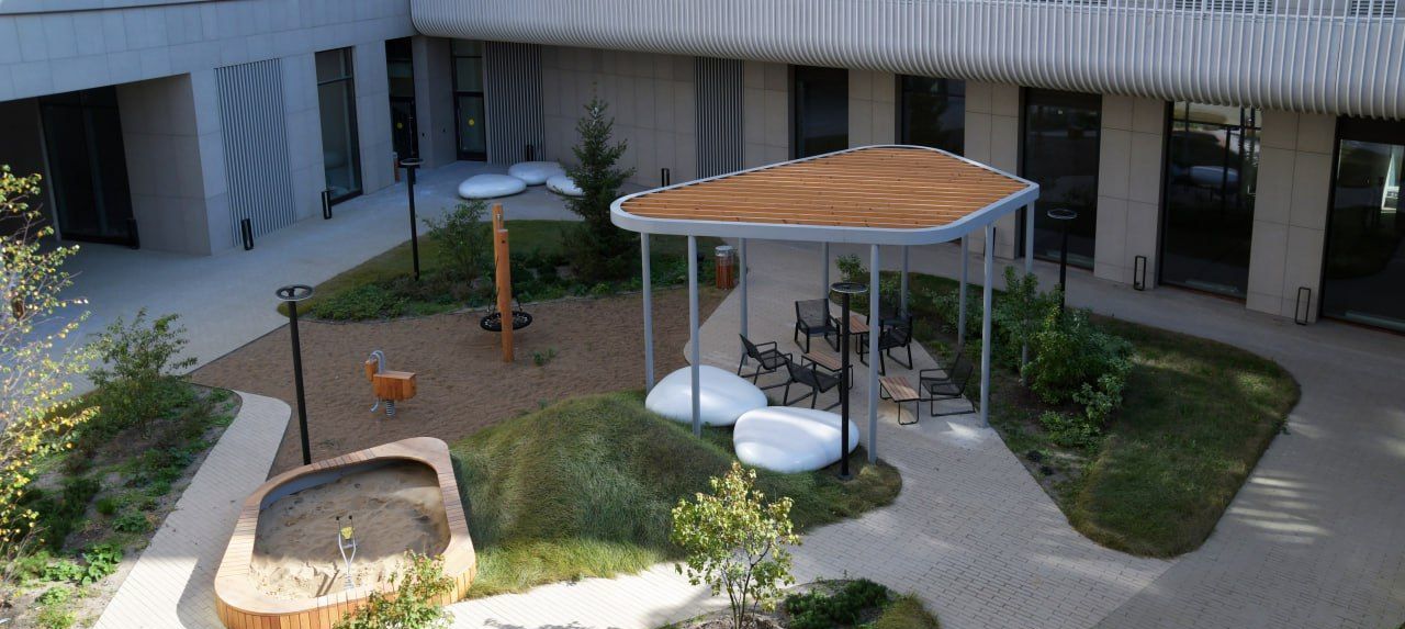 Собачий парк у дома для владельцев питомцев это огромный плюс. Площадка для выгула буквально в двух минутах от подъезда, очень удобно.