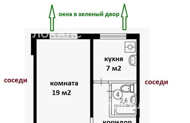 ПЛАНИРОВКА: изолированная комната, совмещенный санузел (полноценная ванна), без балкона.