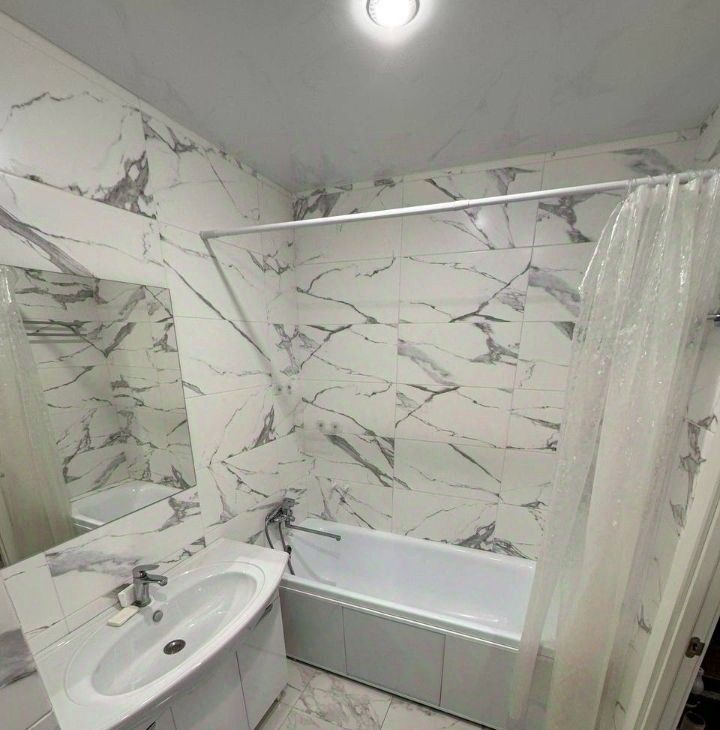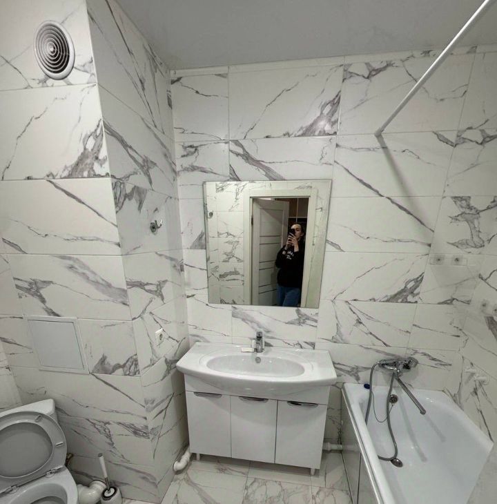 Санузел совмещенный, оборудован современной сантехникой. В квартире остается стиральная машина.