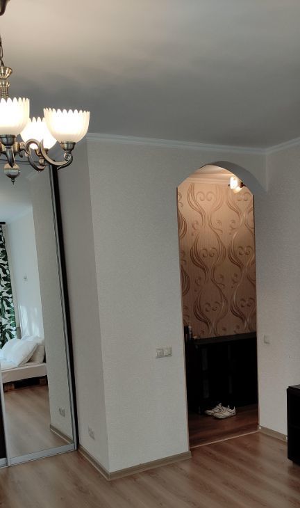 В квартире хороший ремонт, поэтому она готова к комфортному проживанию. В комнате и на кухне есть вся необходимая мебель. Техника также в полном комплекте: кондиционер, холодильник, телевизор и стиральная машина. Санузел совмещённый, с ванной. Окна выходят во двор, поэтому в квартире тихо и спокойно.
