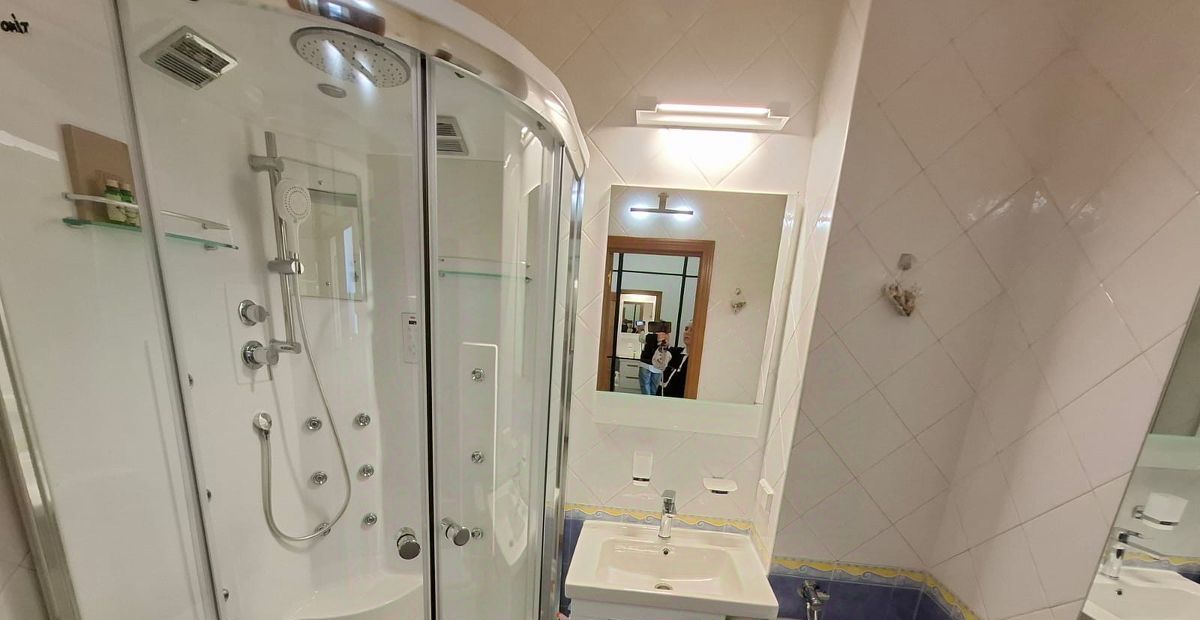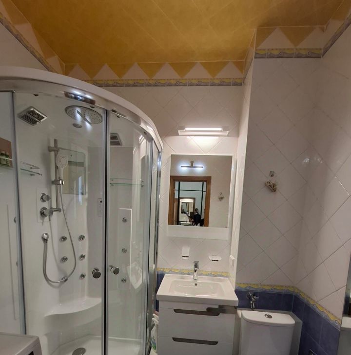 Бытовая техника новая: холодильник, посудомоечная машина, система фильтрации воды, измельчитель бытовых отходов, микроволновая печь, чайник, варочная панель/духовой шкаф, стиральная машина с сушкой, душевая кабина с различными режимами подачи воды + встроенный приёмник (радио, музыка), ТВ (повесили на поворотный кронштейн, что была возможность смотреть со стороны спального места), кондиционер, wifi, smart TV