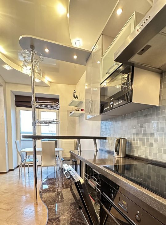 Квартира полностью оборудована и готова к проживанию: встроенная кухня, большой шкаф-купе, гардеробная, мебель, бытовая техника( ПММ, СВЧ, Холодильник, духовка, плита индукционная, стиральная машинка), кондиционер, фильтр для воды, тв, интернет.