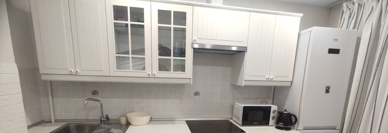 В квартире в наличии вся необходимая техника: кондиционер, холодильник, телевизор и стиральная машина. На кухне и в комнате есть мебель, а санузел совмещённый, с ванной. Есть балкон для отдыха на свежем воздухе.