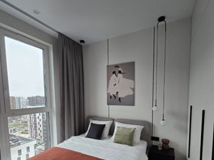 Сдаётся стильная евродвушка, квартира поделена на зону ностиной и кухни, так же дополнителтно есть изолированеая спальня. Квартира площадью 57 кв. м на 12 этаже современного 31-этажного монолитного дома бизнес класса, построенного в 2018 году. Жилая площадь составляет 32 кв. м, а кухня — 9 кв. м. Высота потолков — 2,7 метра. Окна выходят на улицу, что обеспечивает отличное естественное освещение. Удобное расположение: всего 12 минут пешком до метро "Улица Скобелевская".