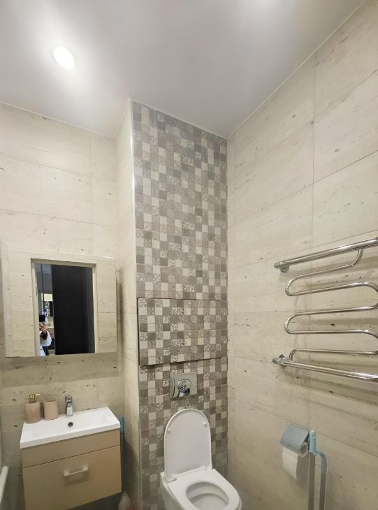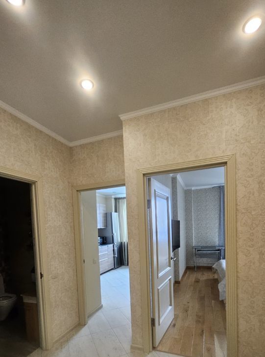 В квартире сделан евроремонт, что гарантирует современный и стильный интерьер. В комнате и на кухне есть вся необходимая мебель. Из техники — холодильник, телевизор и стиральная машина, поэтому можно сразу же заезжать и жить с комфортом. Санузел совмещённый, оборудован ванной, что позволяет расслабиться после рабочего дня. Имеется гардеробная. Окна выходят во двор, поэтому в квартире всегда тихо и спокойно. Также в квартире есть лоджия, где можно обустроить зону отдыха и наслаждаться великолепным видом из окна.
