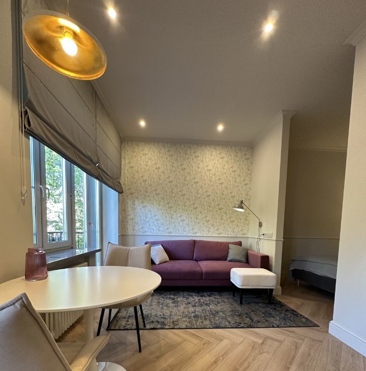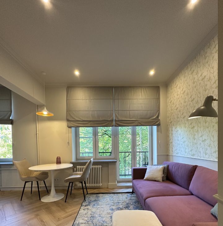 Сдается уютная, светлая квартира в сталинском доме с высокими потолками, полностью укомплектована всей необходимой техникой и мебелью, включая посуду, постельное белье, есть гардеробная комната. Дизайнерский ремонт, стильная обстановка. Квартира полностью готова к комфортному проживанию, остается все, что есть на фото. Идеальный вариант для арендаторов, для которых важен вид, стиль, комфорт. Дом расположен в тихом дворе, прекрасный вид из окон на зеленый сад, рядом Азбука вкуса, ВкусВилл. С детьми, животными, не рассматриваем. Курить в квартире категорически запрещено.