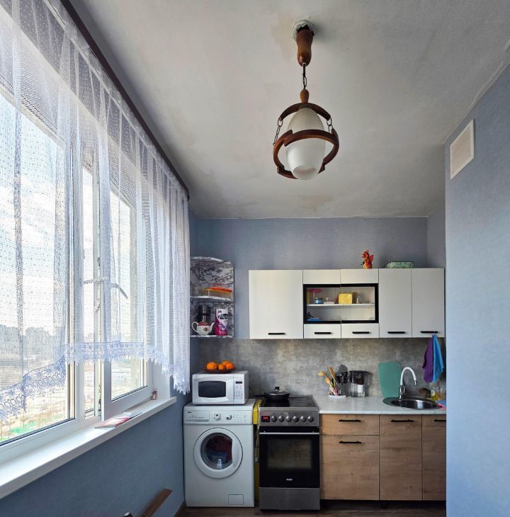 Функциональная планировка включает в себя: кухню, спальню, совмещенный санузел, прихожую. В квартире есть вся необходимая мебель и техника. Также куплена новая мебель (шкафы) в комнату, но требует сборки. Имеется детская кроватка. Окна и балкон выходят на Парк 50-летия Октября.