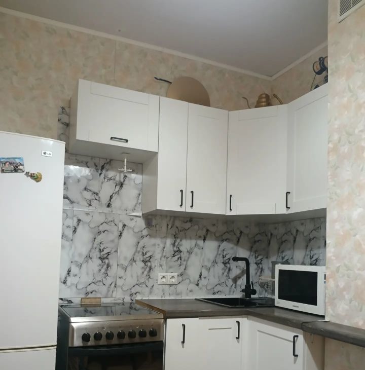 После косметического ремонта с заменой обоев , напольного покрытия , новое остекление балкона и современный кухонный гарнитур .